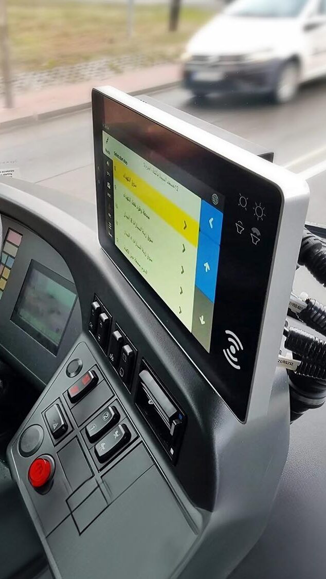 Otras características del dispositivo, que cuenta con la certificación E-Mark para componentes de vehículos, son una lógica de control para ajustar automáticamente el brillo de la pantalla a la luz ambiente, un mando a distancia y un lector RFID que los conductores de autobús utilizan para fichar a la entrada y a la salida.