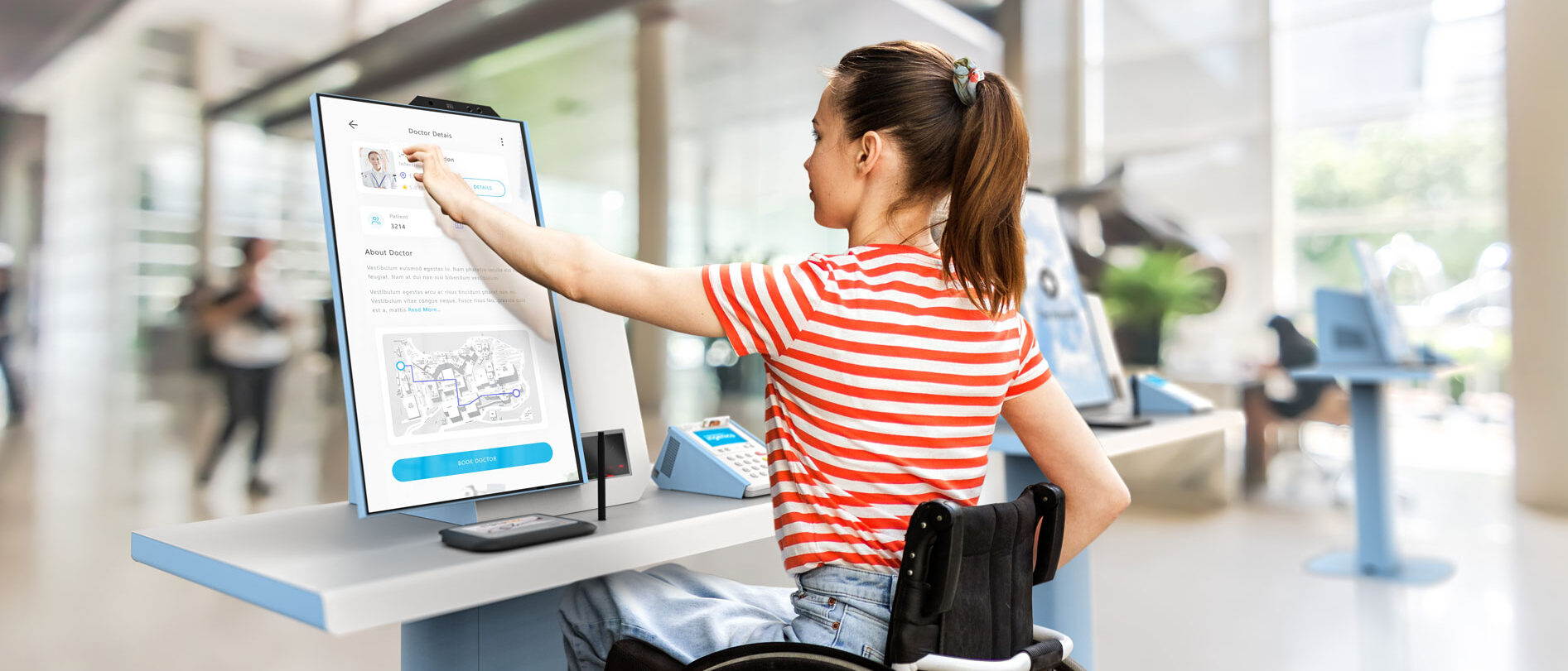 Simplifique la gestión de pacientes en su centro con terminales para el registro y la salida automáticos, sistemas de orientación y pedidos de comida.
