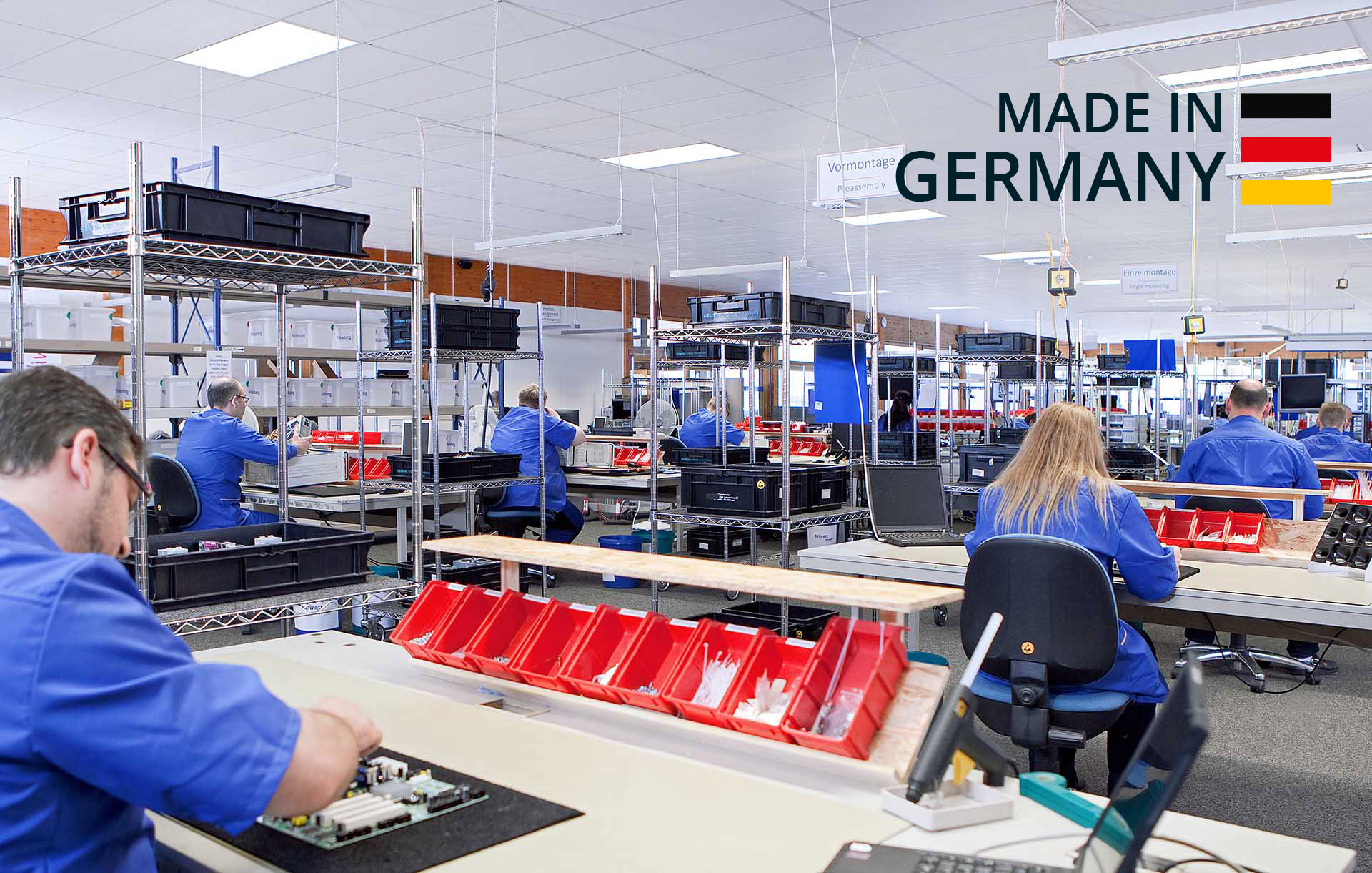 Al fabricar en Alemania, garantizamos una alta calidad constante de nuestros productos. Nuestros clientes se benefician de soluciones duraderas y fiables que cumplen los requisitos más exigentes. Nuestro centro de producción y logística se encuentra en Ichtershausen, Turingia. Aquí es donde los PC industriales y servidores industriales de nuestra marca AKHET® y los terminales de autoserviciode nuestra marca POLYTOUCH®. Gracias a su proximidad al centro de carga aérea de DHL en Leipzig y a su excelente posición logística dentro de Alemania y Europa, ahorramos tiempo y dinero en envíos nacionales e internacionales.
