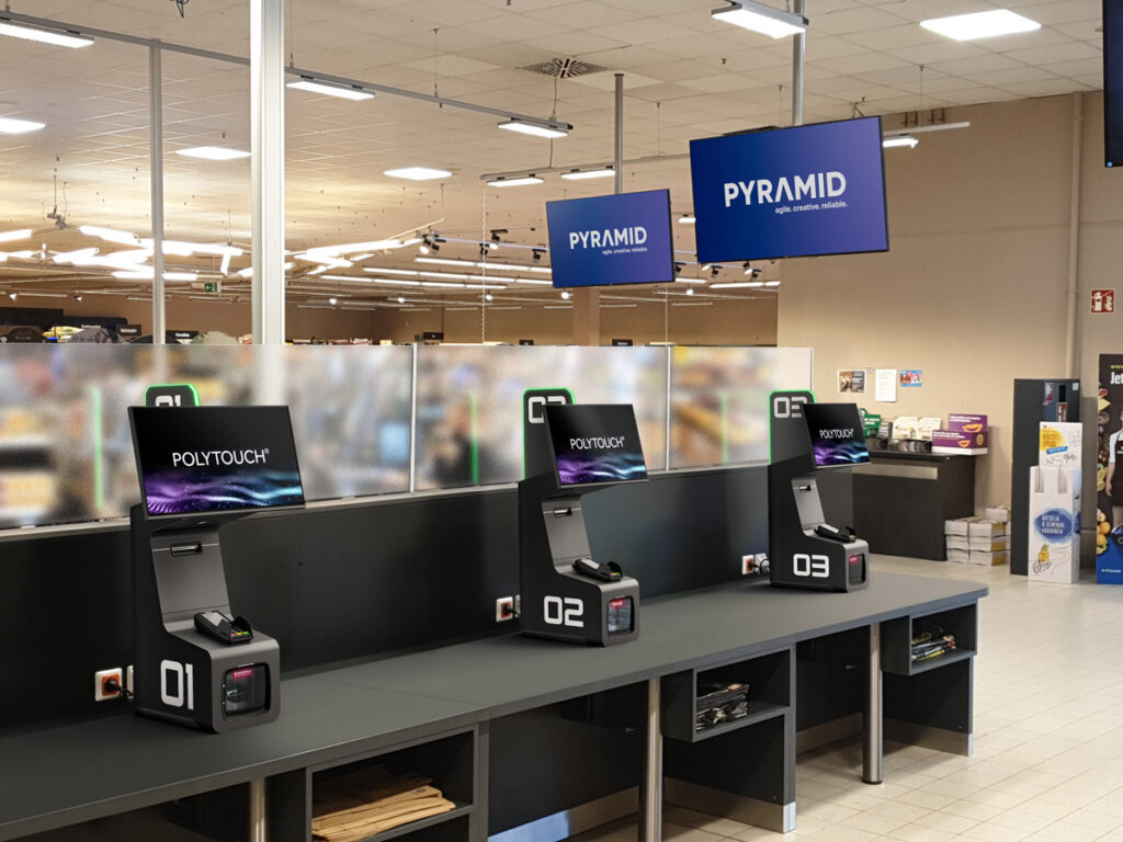 El tercer reto que planteamos a nuestro equipo de diseño tenía que ver con el aspecto del nuevo terminal: como todos los POLYTOUCH® Las soluciones de quiosco deben llamar la atención del consumidor en la superficie y animarle a utilizar el autoservicio. Nada en él debe dar la impresión de que el autopago puede ser incómodo, complicado o lento. El objetivo declarado era utilizar el diseño visual del NANO para disipar cualquier reserva que pudiera existir sobre el autoservicio y presentarlo a los clientes como la mejor solución para el pago. Para resolver esta tarea, el equipo de diseño dotó al Nano de un lenguaje de formas claro mediante biseles. A ello contribuye también la disposición de todos los componentes y módulos periféricos en vertical. Ambas características visuales confieren al terminal un aura sublime que lo convierte en un punto de referencia visible desde lejos en el colorido y fragmentado mundo de los artículos del comercio minorista. La línea vertical de los módulos periféricos, desde el escáner en la base hasta la impresora debajo de la pantalla, corresponde al proceso de pago y guía al cliente de forma intuitiva a lo largo del proceso. Por eso, SCO el SCO el NANO, solo hay que escanear, pagar y disfrutar.