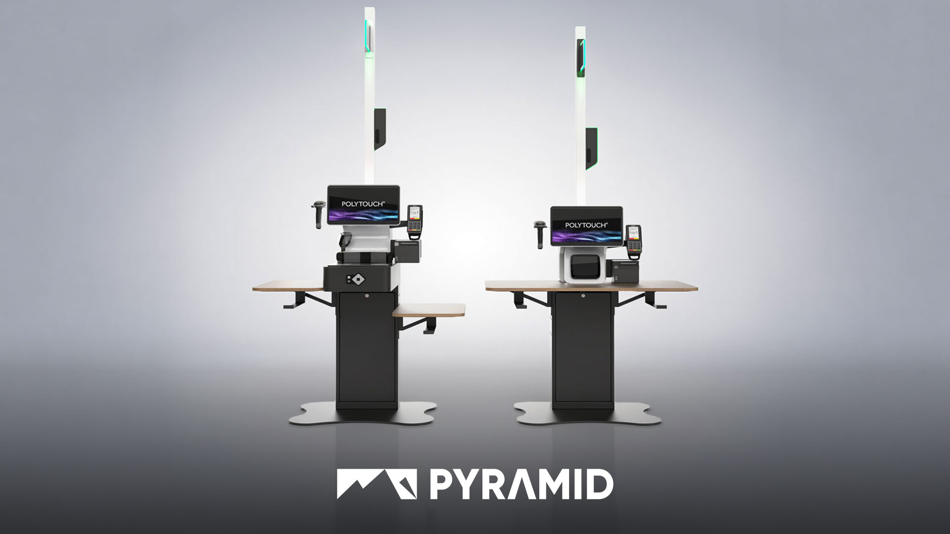El POLYTOUCH® está disponible en dos versiones: para mostrador y para caja registradora. Con escáner integrado en la superficie de trabajo para un proceso de pago familiar e intuitivo en el proceso clásico de caja: los clientes realizan los movimientos habituales, solo que en autoservicio.