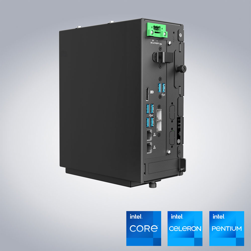 Railon Pro I es un sistema compacto que puede equiparse con CPU Intel® Core™, Celeron™o Pentium™, en función de los requisitos de rendimiento de la aplicación.