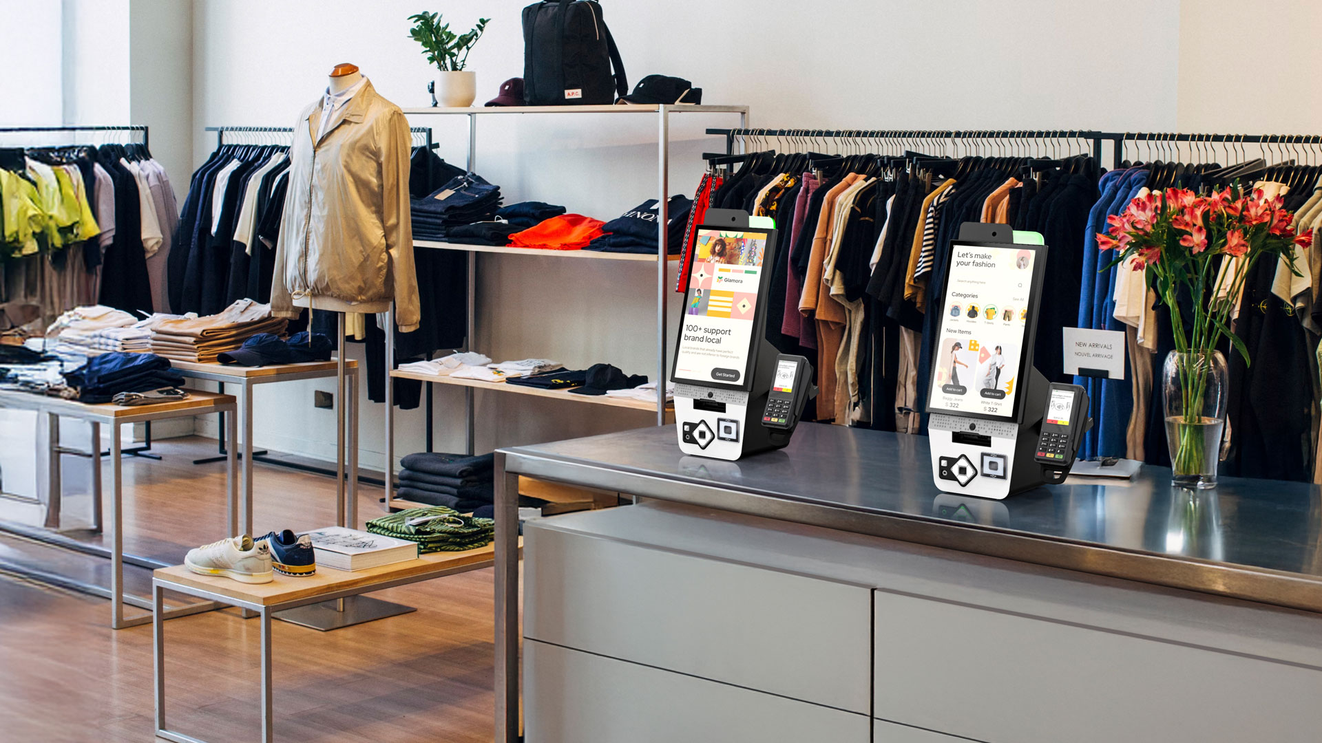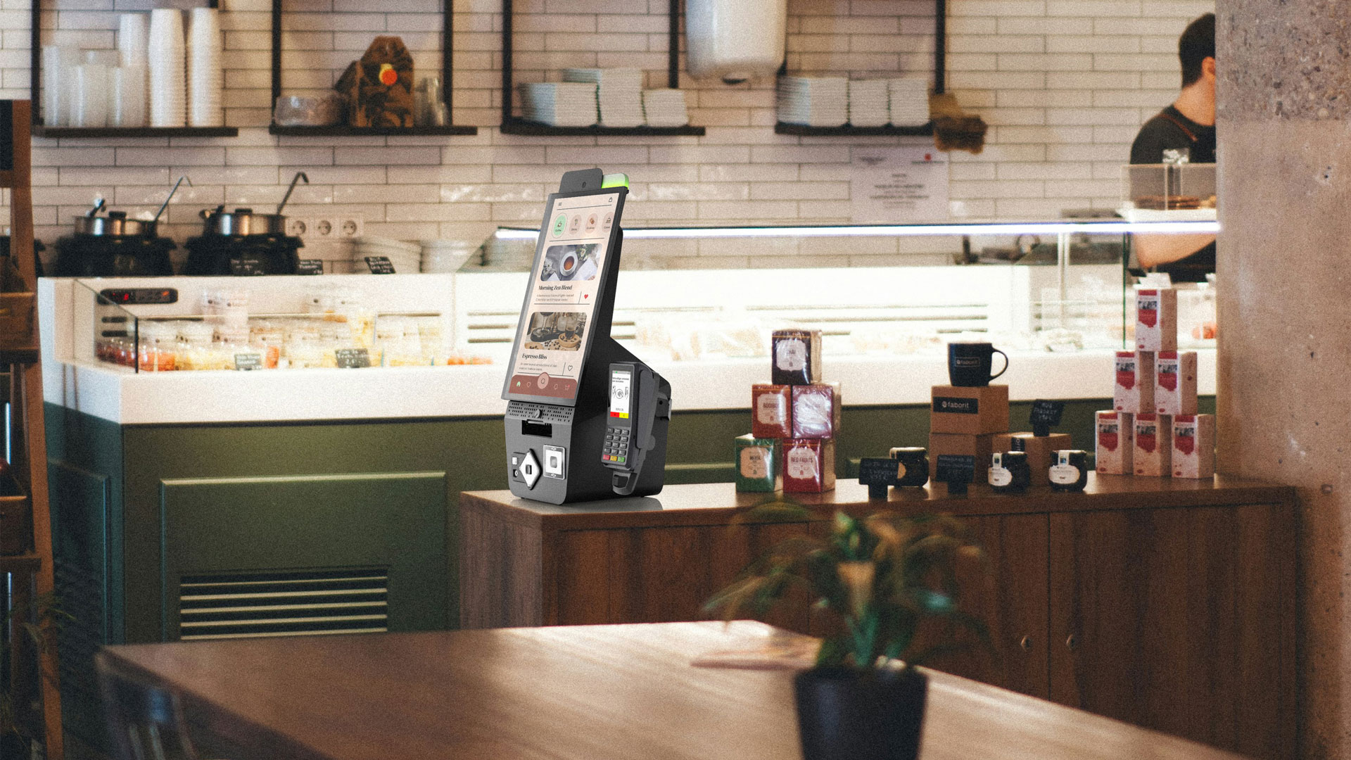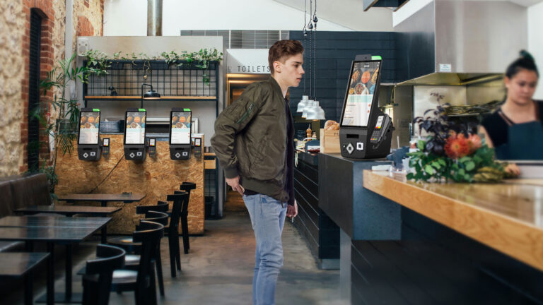 El formato ultracompacto del terminal y sus opciones de montaje en pared y en mostrador facilitan el autoservicio.