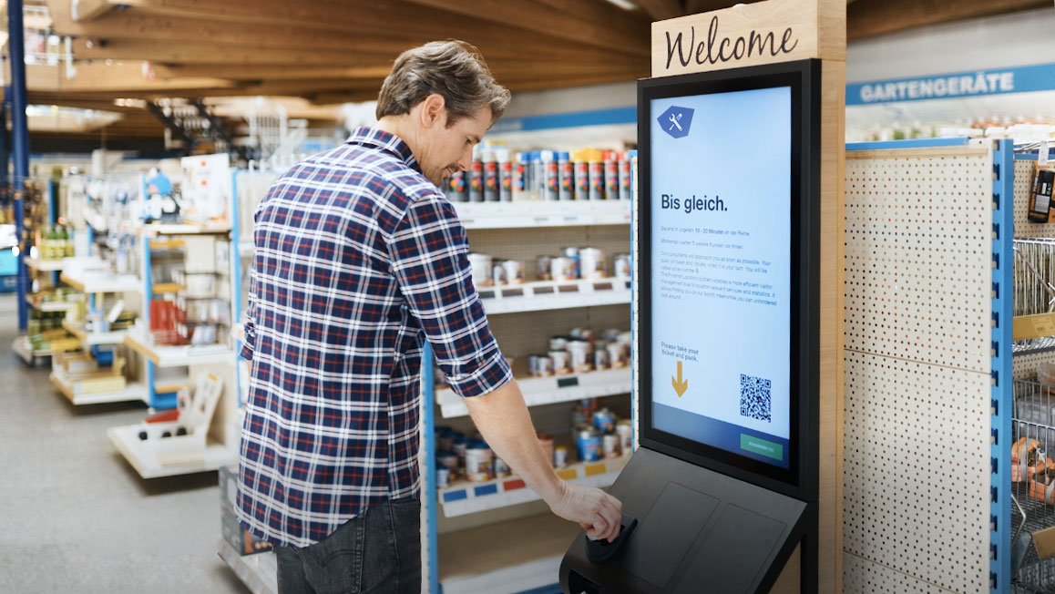 Para una automatización aún mayor, integre uno o varios terminales de quiosco con un dispensador interno de discos en su infraestructura de punto de venta o punto de servicio.