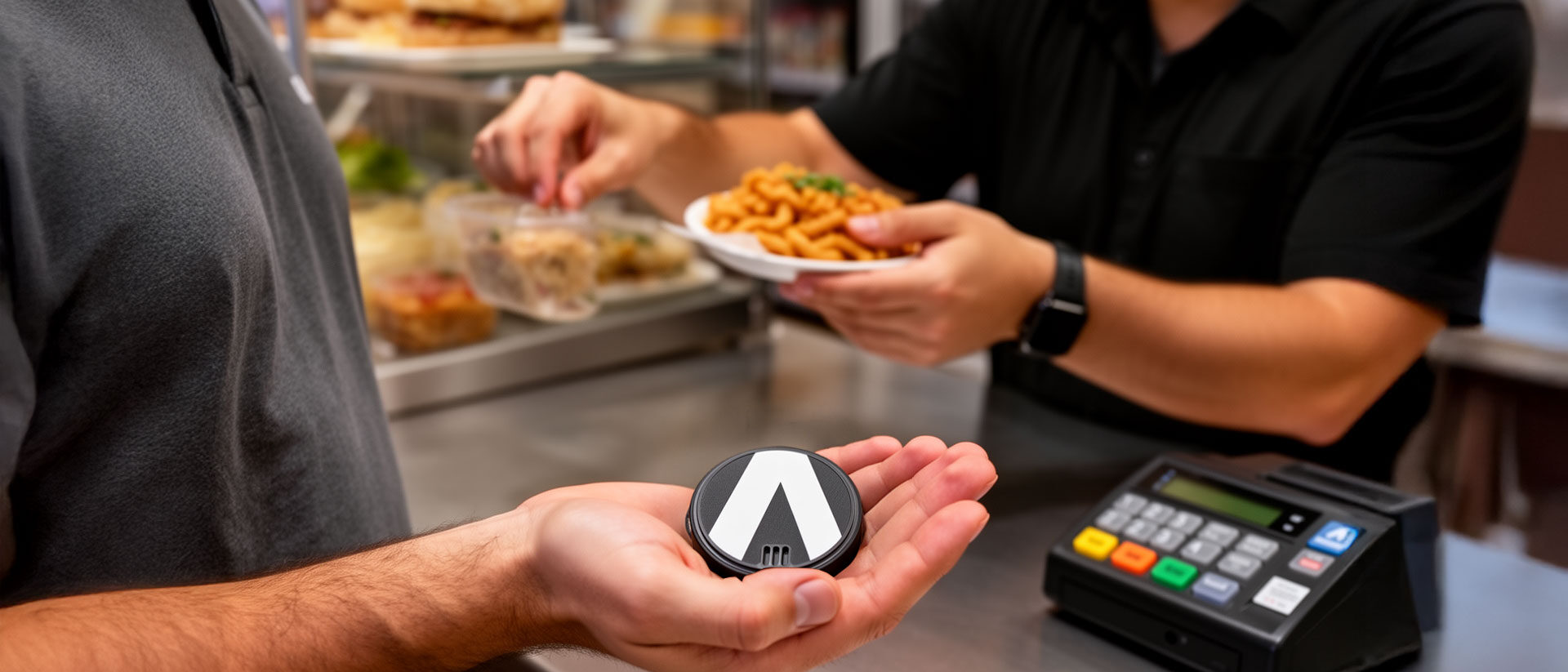 Esto permite que los pedidos de comida, las solicitudes de asesoramiento y las órdenes de servicio se registren directamente en el terminal, que activa y dispensa los pucks. ¿Prefiere dispensadores de pucks externos? También los tenemos en nuestra cartera.